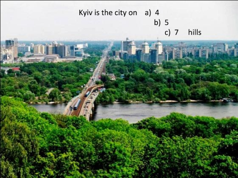 Слайд 5Kyiv is the city on a) 4