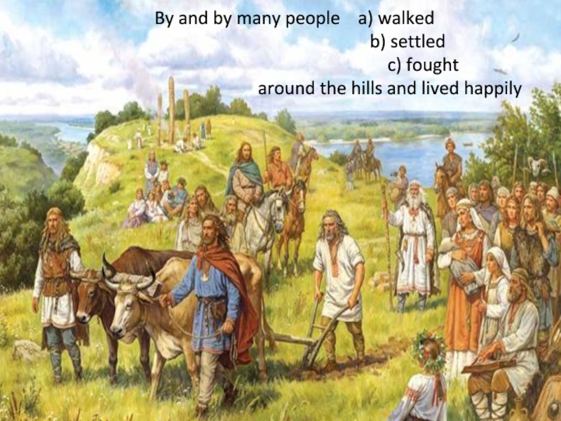 Слайд 7By and by many people a) walked
