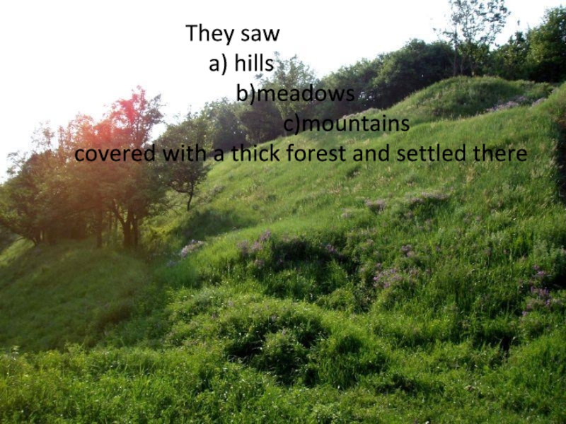 Слайд 4They saw a) hills