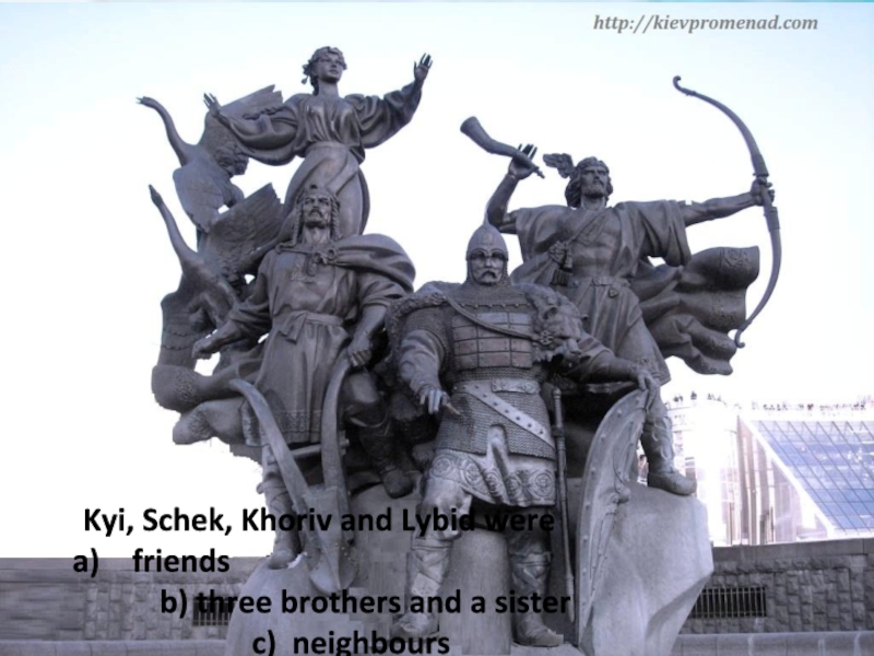 Kyi, Schek, Khoriv and Lybid were friends b) three brothers and a sister c) neighbours