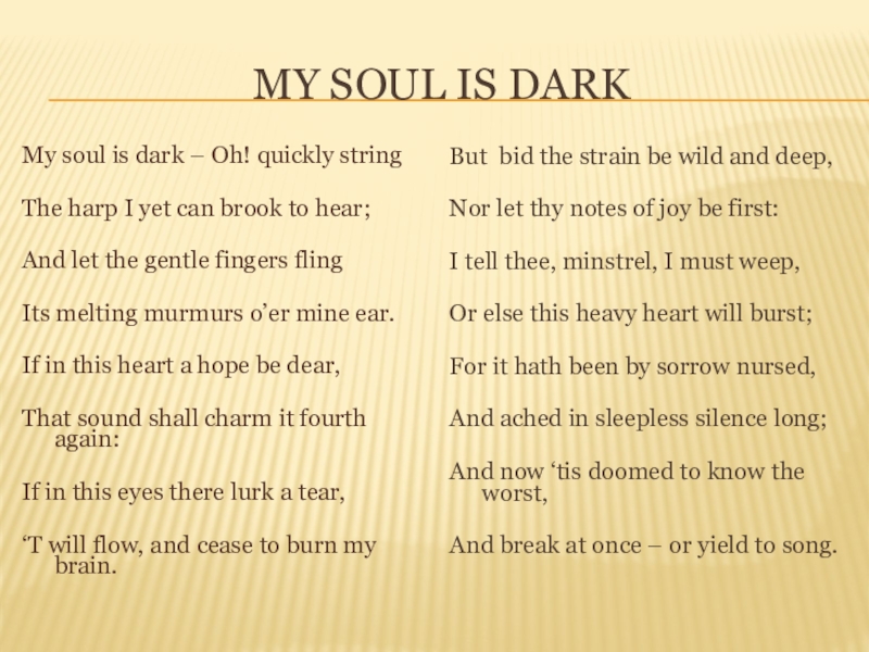 My soul nor deigns nor dares complain,