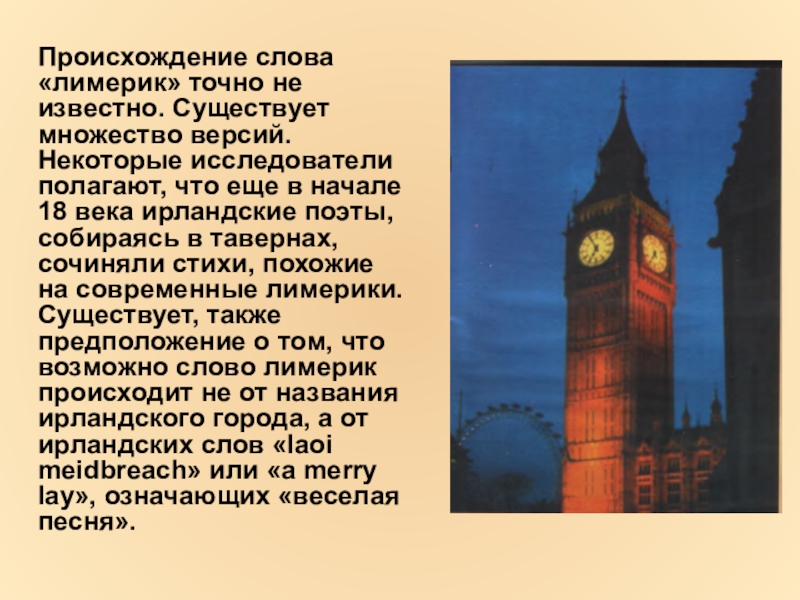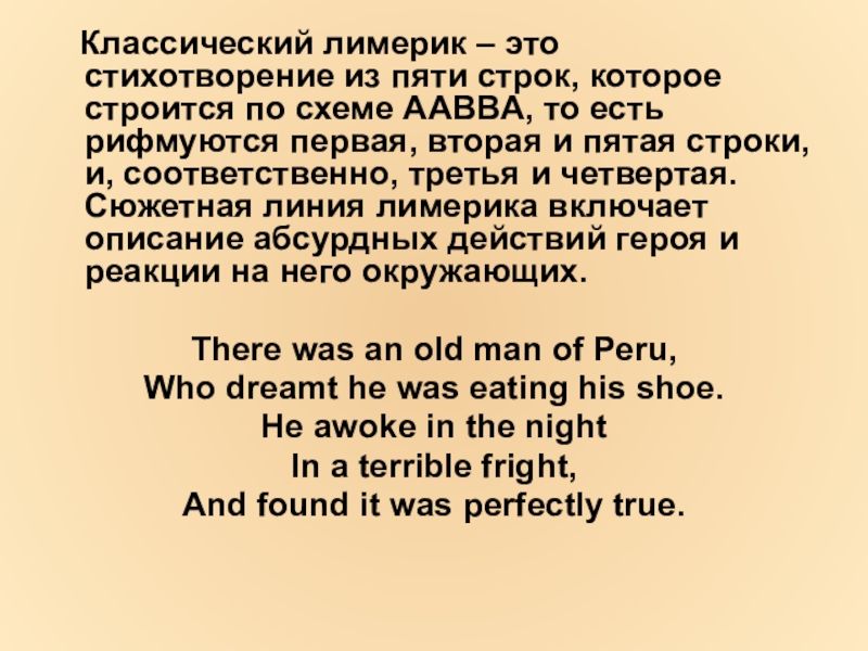 это не просто особенный юмор, а особенный среди особенного. Лимерик – популярная форма короткого юмористического стихотворения, построенного на обыгрывании бессмыслицы, возникшая в Великобритании.