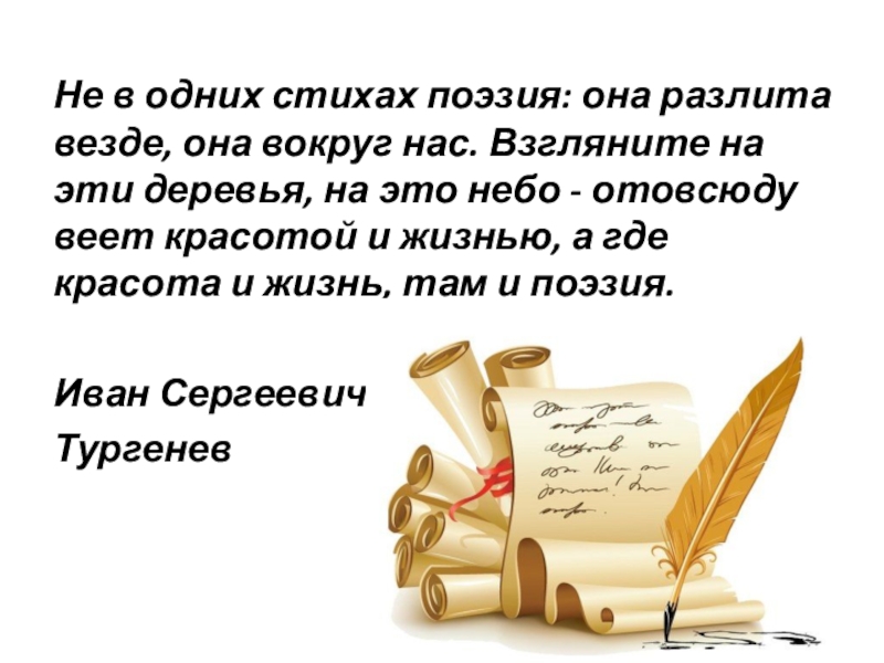 Слайд 6Не в одних стихах поэзия: она разлита везде, она вокруг нас.