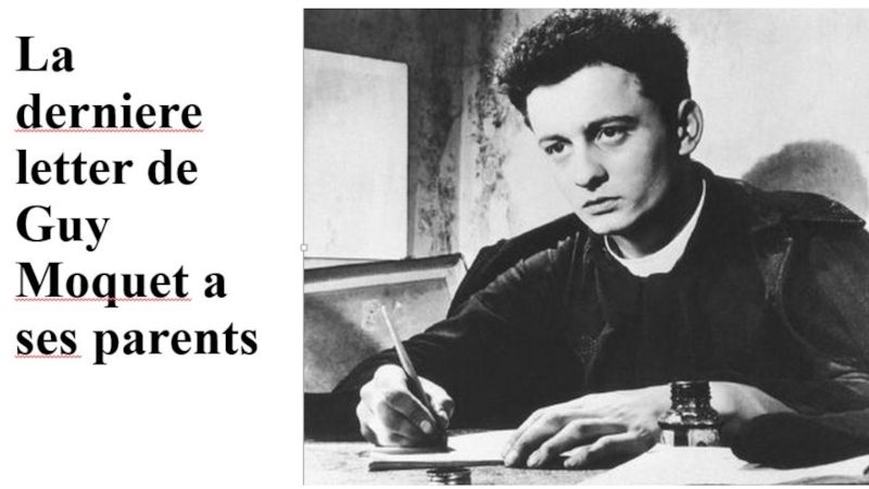 Слайд 13La derniere letter de Guy Moquet a ses parents