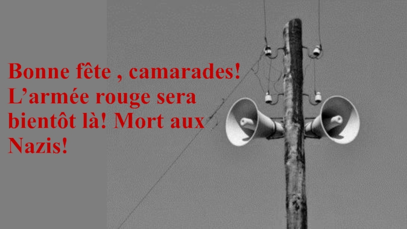 Слайд 10Bonne fête , camarades! L’armée rouge sera bientôt là! Mort aux