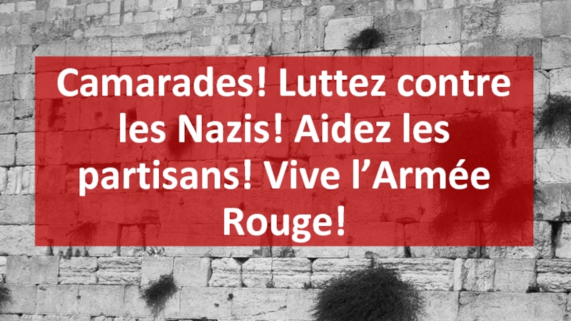 Слайд 5Camarades! Luttez contre les Nazis! Aidez les partisans! Vive l’Armée Rouge!
