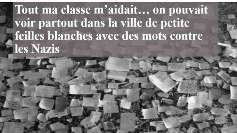 de petite feilles blanches avec des mots contre les Nazis
