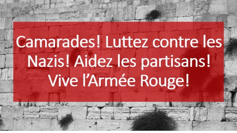 Camarades! Luttez contre les Nazis! Aidez les partisans! Vive l’Armée Rouge!