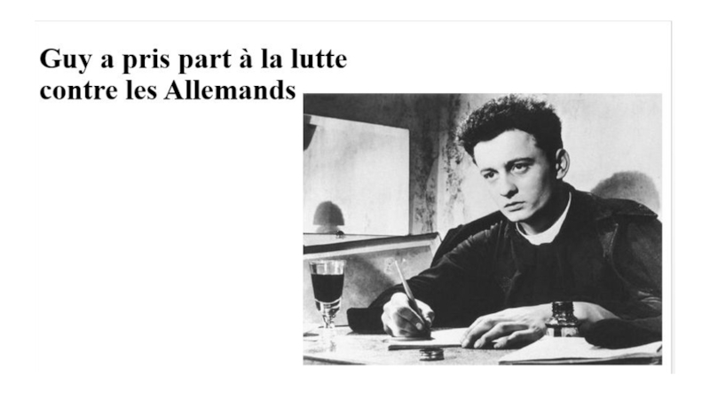 Слайд 16Guy a pris part à la lutte contre les Allemands