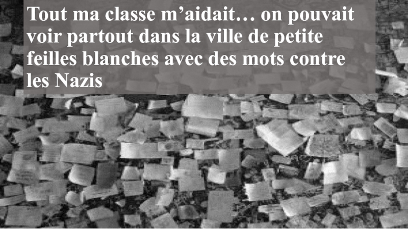 Tout ma classe m’aidait… on pouvait voir partout dans la ville de petite feilles blanches avec des