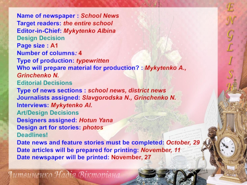 Who will prepare material for production? : Mykytenko A., Grinchenko N.