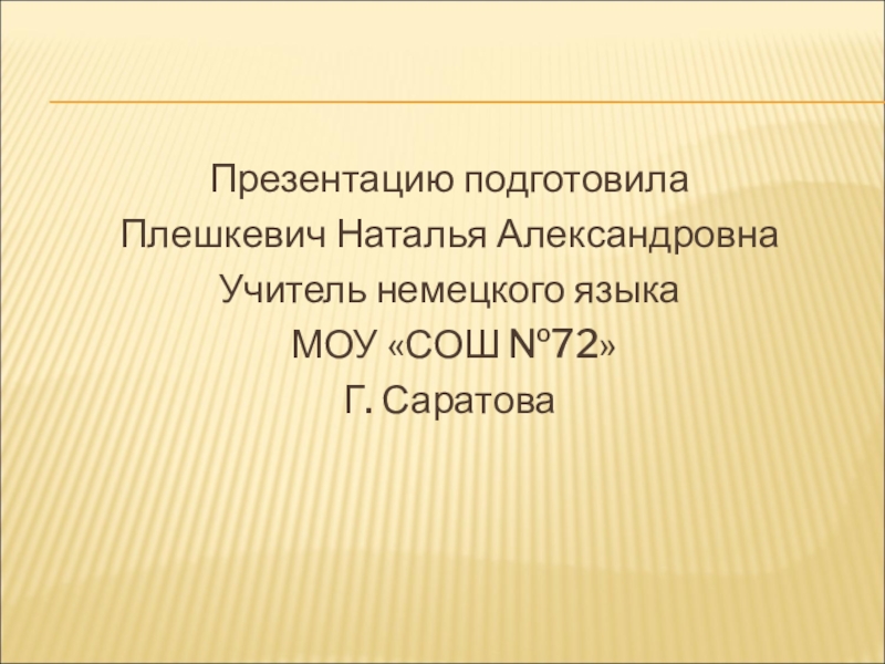 Презентацию подготовилаПлешкевич Наталья АлександровнаУчитель немецкого языка МОУ «СОШ №72»Г. Саратова