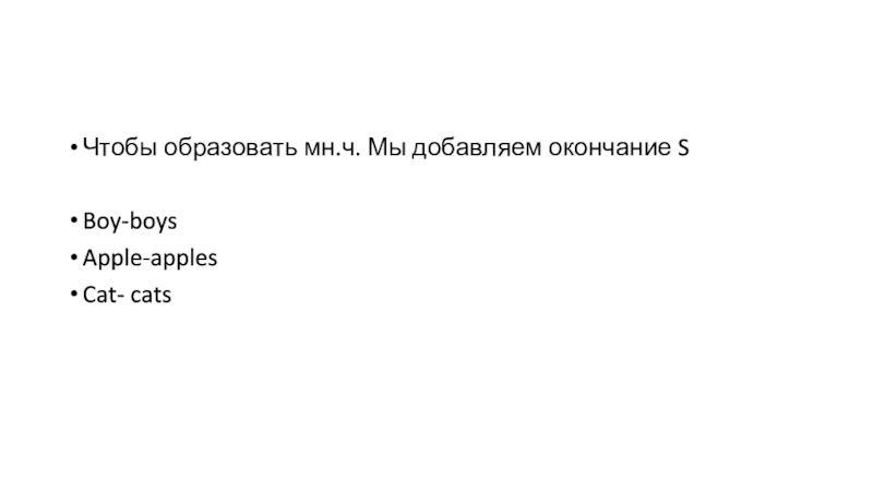 Чтобы образовать мн.ч. Мы добавляем окончание SBoy-boysApple-applesCat- cats