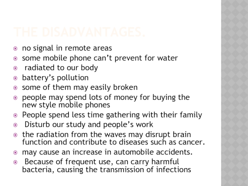 Слайд 9The disadvantages.