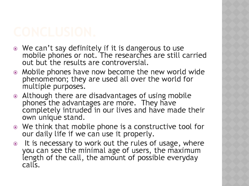 phones or not. The researches are still carried out but the results are controversial.