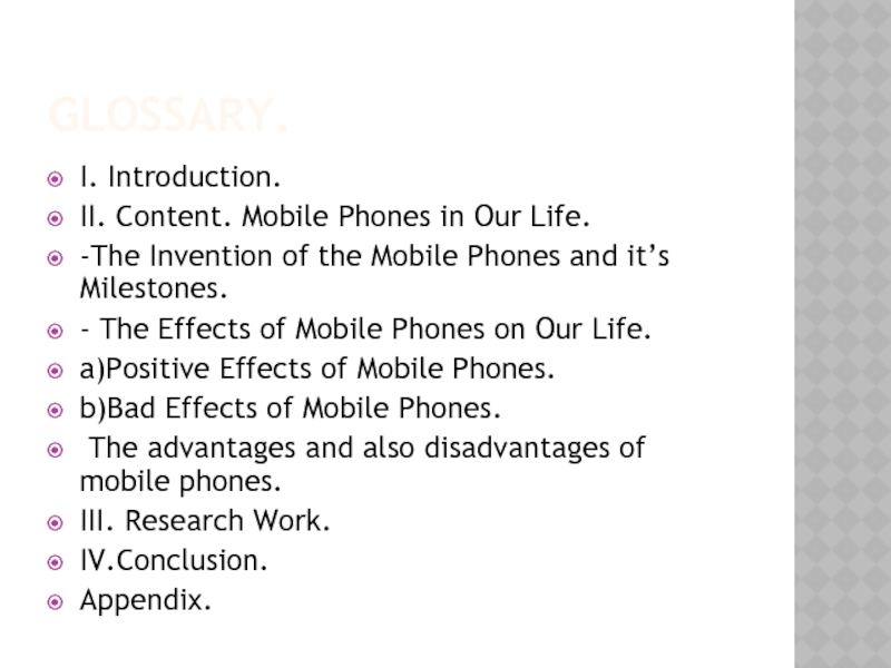 II. Content. Mobile Phones in Our Life.