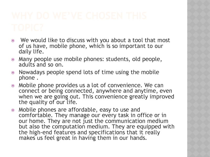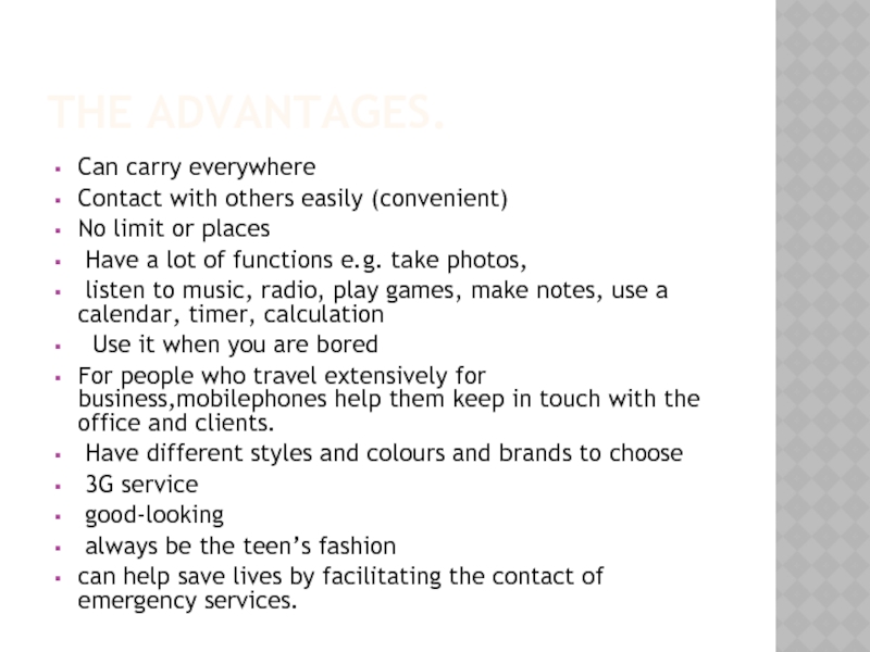 The advantages and also disadvantages of mobile phones.