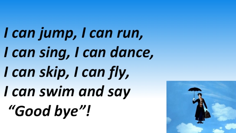 Слайд 19I can jump, I can run,