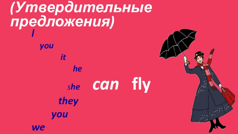 Positive sentences (Утвердительные предложения)l you it he she can fly they youwe