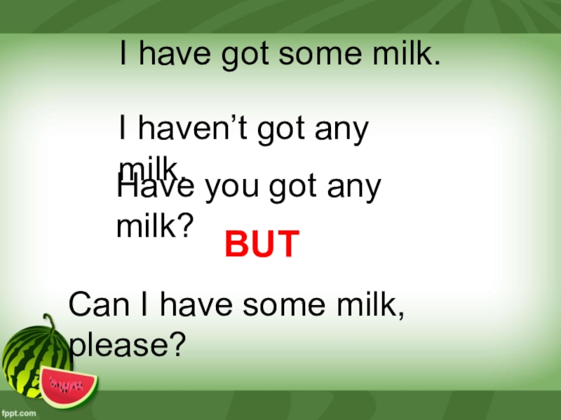 Слайд 8I have got some milk.