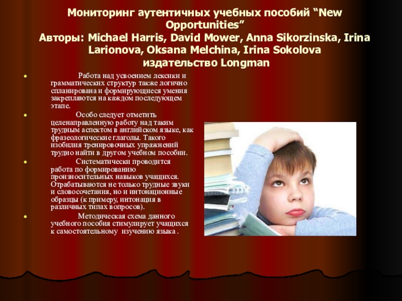 Особо следует отметить целенаправленную работу над таким трудным аспектом в английском языке, как фразеологические глаголы. Такого изобилия тренировочных упражнений трудно найти в другом учебном пособии.