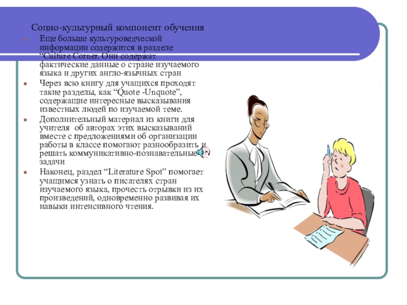 Обучение аудированию также носит коммуникативный характер и тесно взаимосвязано с другими речевыми аспектами.