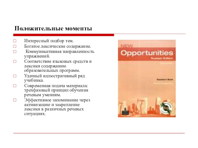Работа над усвоением лексики и грамматических структур также логично спланирована и формирующиеся умения закрепляются на каждом последующем этапе.
