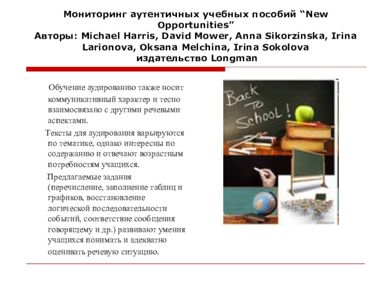 Предлагаемые задания (перечисление, заполнение таблиц и графиков, восстановление логической последовательности событий, соответствие сообщения говорящему и др.) развивают умения учащихся понимать и адекватно оценивать речевую ситуацию.