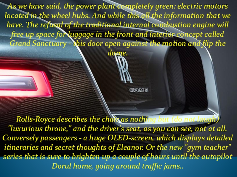Слайд 2Introducing, ladies and gentlemen, this is the future of Rolls-Royce. We'll