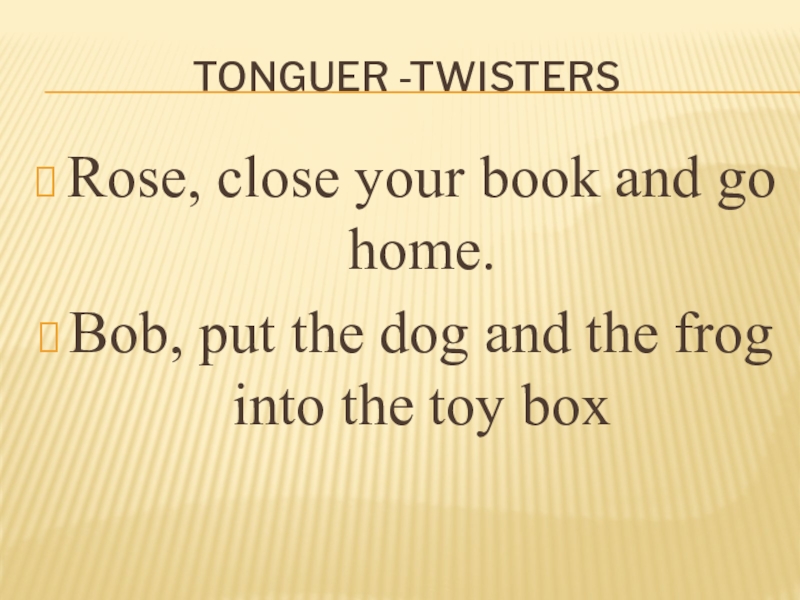 Tonguer -twistersRose, close your book and go home.Bob, put the dog and the frog into the toy