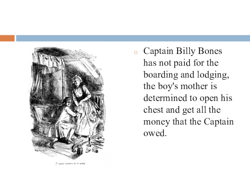 Слайд 11Captain Billy Bones has not paid for the boarding and lodging,