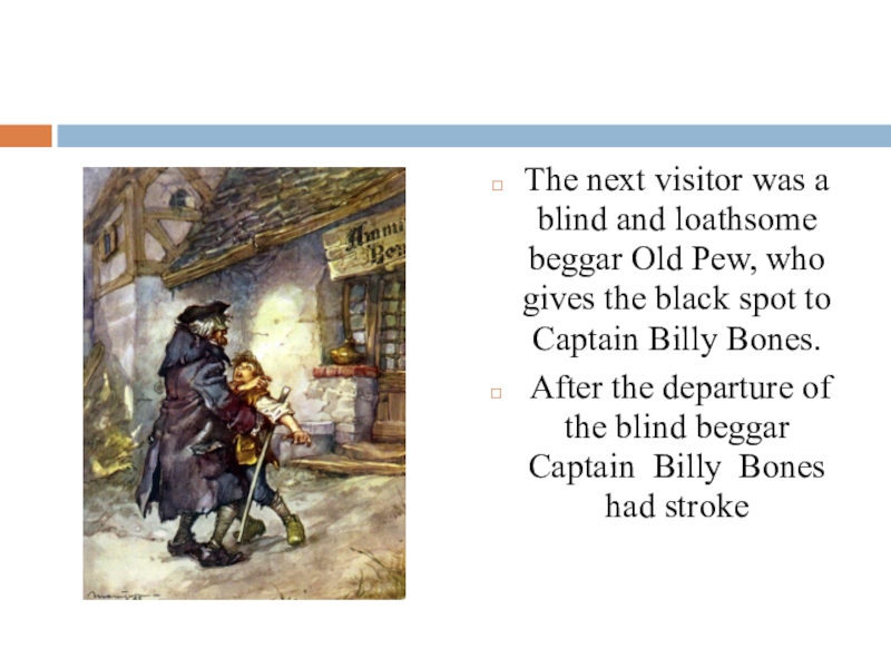Слайд 10The next visitor was a blind and loathsome beggar Old Pew,
