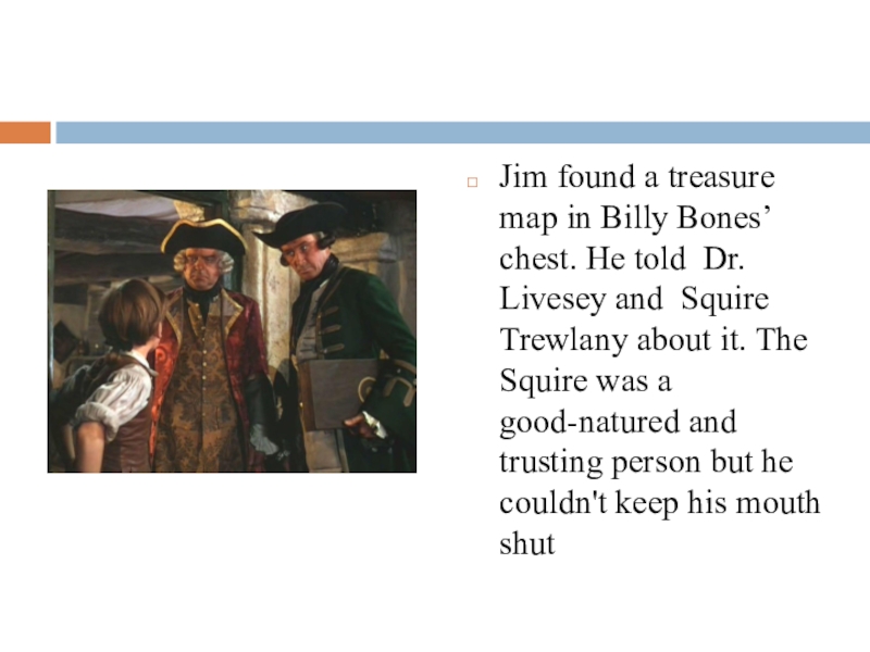 Слайд 12Jim found a treasure map in Billy Bones’ chest. He told