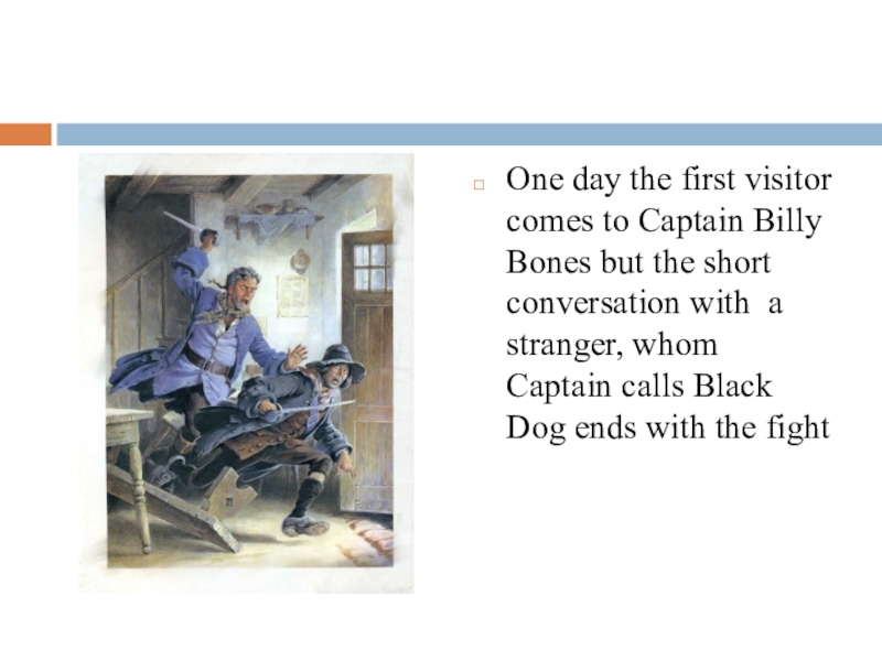Слайд 9One day the first visitor comes to Captain Billy Bones but