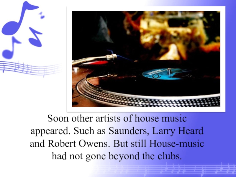 Слайд 8Soon other artists of house music appeared. Such as Saunders, Larry