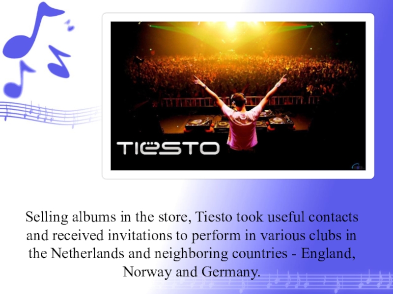 Слайд 14Selling albums in the store, Tiesto took useful contacts and received