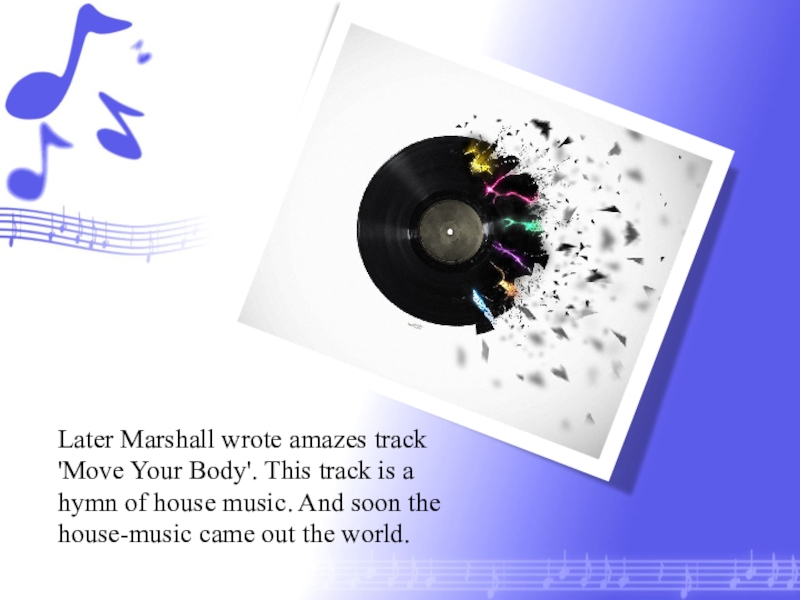 Слайд 10Later Marshall wrote amazes track 'Move Your Body'. This track is