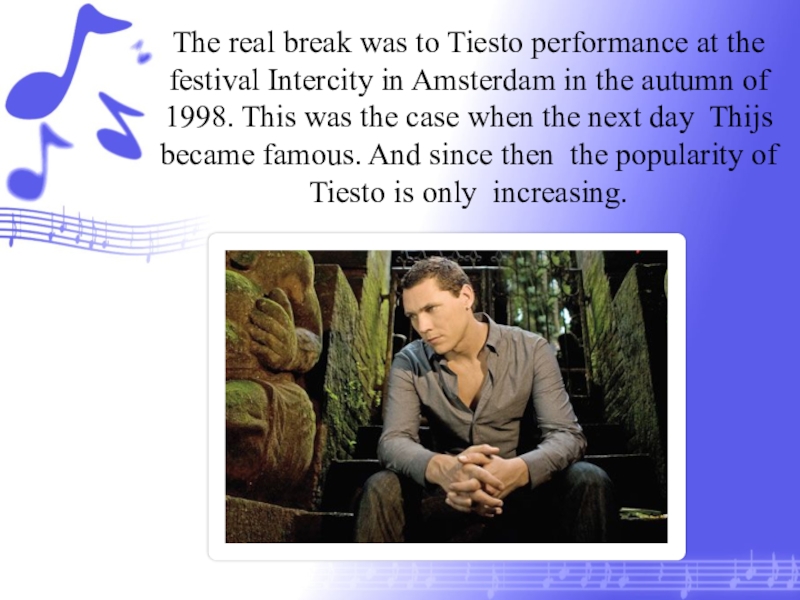 Слайд 16The real break was to Tiesto performance at the festival Intercity