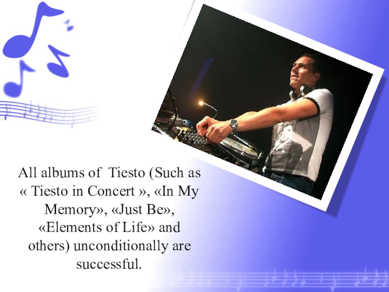 Слайд 18All albums of Tiesto (Such as « Tiesto in Concert »,