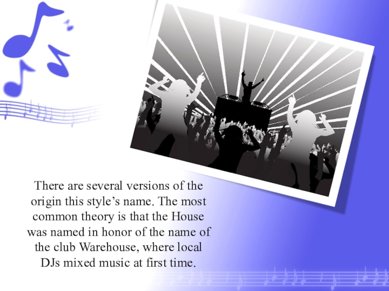 most common theory is that the House was named in honor of the name of the club Warehouse, where local DJs mixed music at first time.