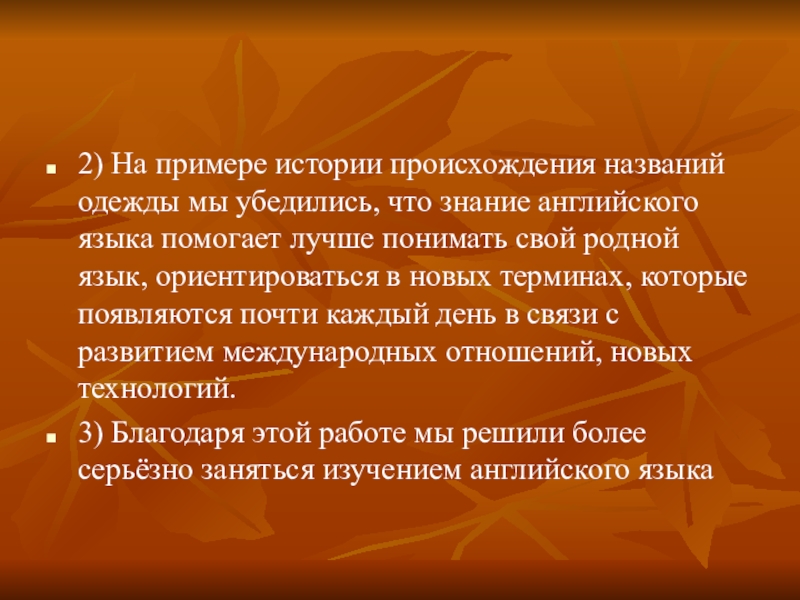 2) На примере истории происхождения названий одежды мы убедились, что знание