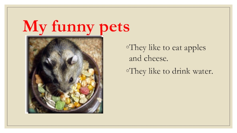 My funny petsThey like to eat apples and cheese.They like to drink water.