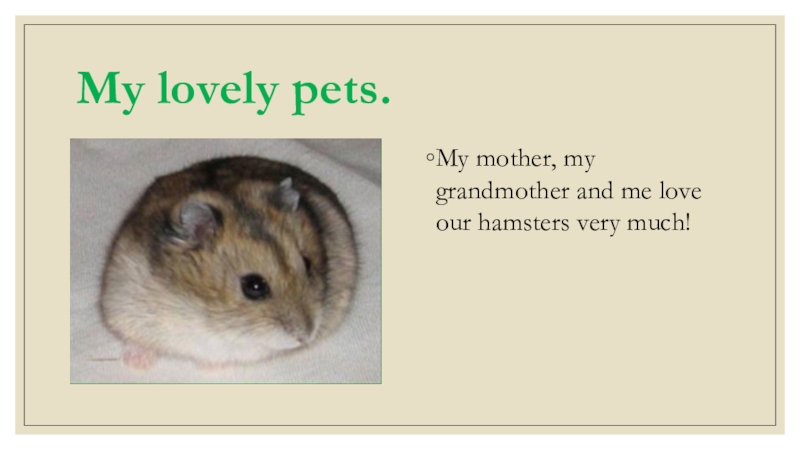 My lovely pets.My mother, my grandmother and me love our hamsters very much!