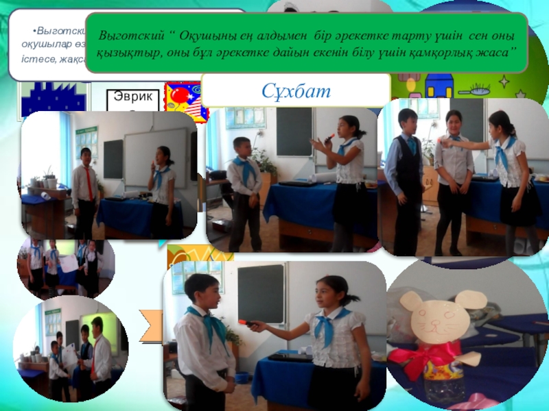Выготский “ Оқушыны ең алдымен бір әрекетке тарту үшін сен оны қызықтыр, оны бұл әрекетке дайын екенін білу үшін қамқорлық жаса”