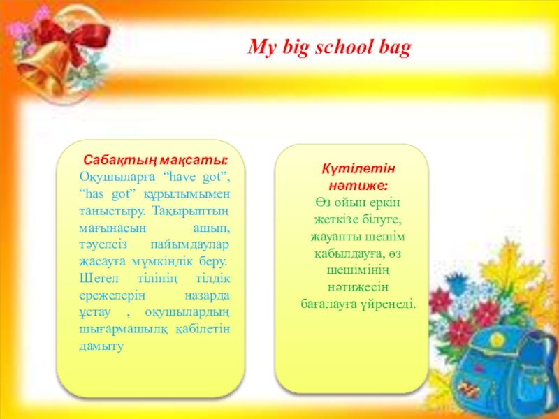 Өз ойын еркін жеткізе білуге, жауапты шешім қабылдауға, өз шешімінің нәтижесін бағалауға үйренеді.