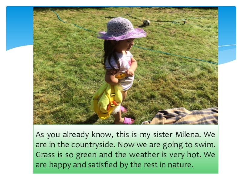 in the countryside. Now we are going to swim. Grass is so green and the weather is very hot. We are happy and satisfied by the rest in nature.