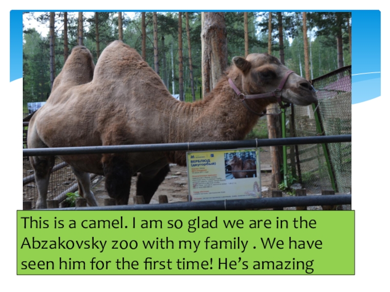 This is a camel. I am so glad we are in the Abzakovsky zoo with my family