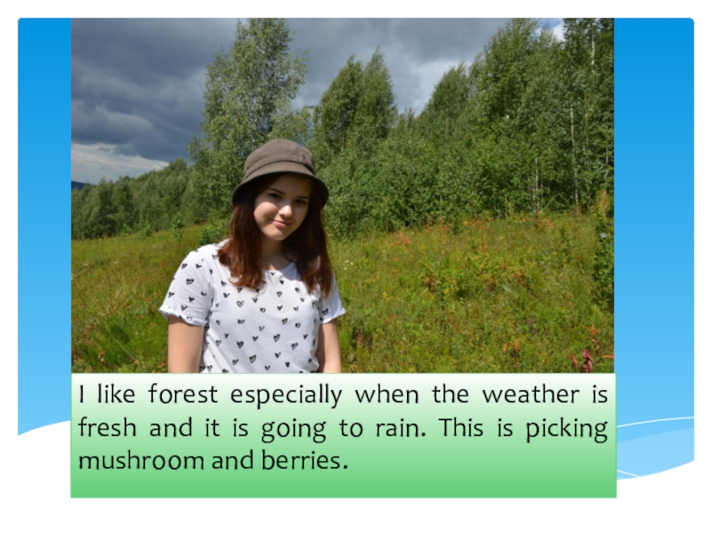 I like forest especially when the weather is fresh and it is going to rain. This is picking mushroom and berries.