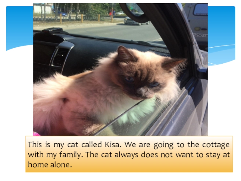 This is my cat called Kisa. We are going to the cottage with my family. The cat