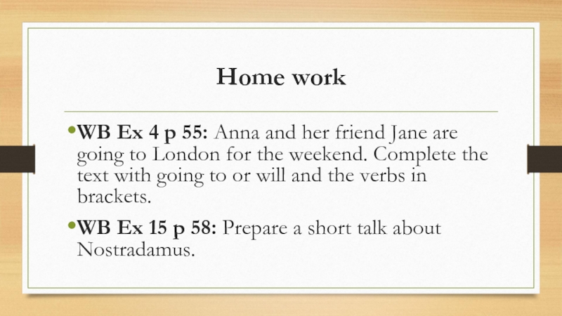 Home workWB Ex 4 p 55: Anna and her friend Jane are going to London for the